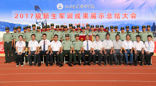 9月14日下午,学院在田径体育场隆重举行2017级新生军训成果总结大会。2017级新生展示了十几天的军训成果,大会对军训先进个人和优秀连队进行了表彰。学院院长王敬良、副院长李振鹏、党委副书记徐立清、院长助理仉继航,承训部队首长及教官,相关部门、单位主要负责人出席了军训成果总结大会。