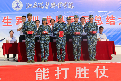 学院领导为军训期间表现突出的个人代表颁发荣誉证书