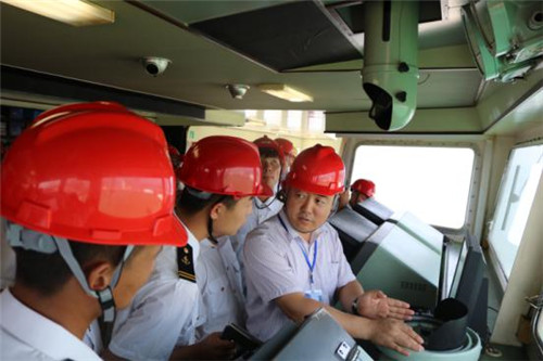 上午10点,同学们到达潍坊港码头,鲁辽大通道客滚船的船员们热情欢迎同学们的到来,为同学们细心讲解船上工作生活情况,海员们丰富多彩的职业生活,给同学们留下深刻的印象。随后同学们在工作人员的引导下,参观了船内生活舱室、公共场所、作业甲板等功能区间,航海学院的同学被巨大的驾驶台和机舱操作台深深吸引,更加坚定了苦练本领、扬帆远航的职业理想。航海学院的学子们还在现场表演了极具航海特色的旗语展示节目,同时通过郑重的海员宣誓仪式,表达对海员的崇高敬意。