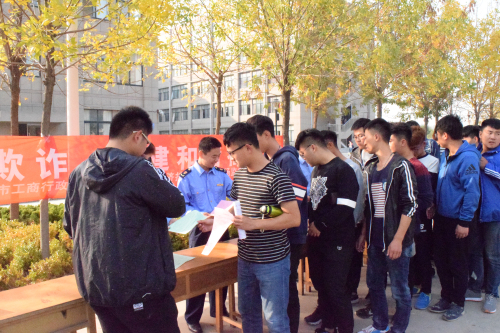10月14日下午,山东海事职业学院团委联合潍坊市公平交易局与滨海监督管理局,在学院中央大道上开展了一场以“反对传销欺诈,共建和谐校园”为主题的反传销宣传活动。引导在校大学生识别传销本质,增强反传销能力,使学生们深刻地认识到传销对个人、家庭和社会所带来的危害。