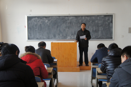 1月7日上午,我院在2219教室召开2015-2016学年第一学期中层干部考核会议,分别从“德、能、勤、绩、廉”等方面对全体中层干部进行民主测评,考核分为总结述职和民主测评两部分。院长王敬良,副院长李振鹏,副书记徐立清,院长助理仉继航、全院中层干部及部分教师代表参加了考核会议。会议由副书记徐立清主持。