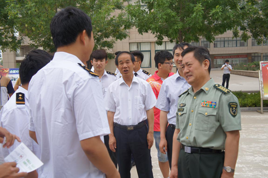 6月24日上午,潍坊军分区司令员万伟锋一行5人,来我院进行了调研,在院长王敬良等院领导的陪同下,参观学院实训实验室及校园,并深入学生中调研大学生征兵工作情况。