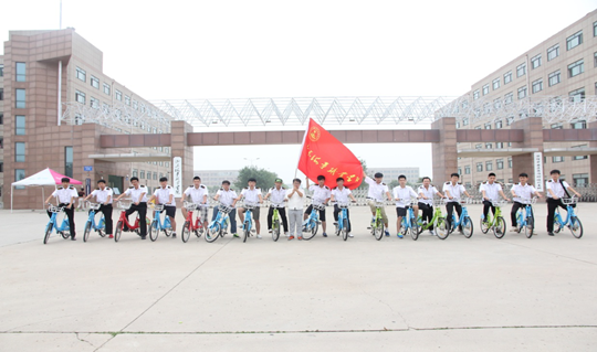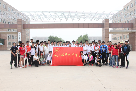 早上8点整,学院团委学生志愿服务队的同学们,统一着装校服,扬起山东海事职业学院院旗,有序的抵达蓝色畅想与其他骑行志愿者汇合。看到我院团委学生志愿服务队如此有秩序,骑行志愿者们在远处就为大学生们竖起大拇指。