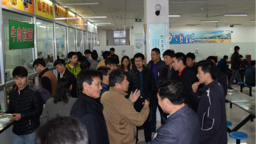 3月31日,院领导仉继航带领团委学生处、教务处、总务处及各系、中心负责人和全体学生管理人员组成的调研团走进学生餐厅,就食品安全、就餐环境、饭菜质量及学生关心的价格问题进行实地调研。