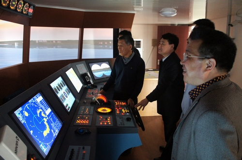 会谈结束后,常院长一行在仉院长陪同下参观了学院航海模拟实训室、轮机模拟实训室、实训车间。