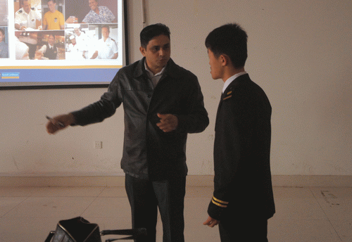 2014年11月28日,美国皇家加勒比邮轮公司面试官Jenny、Sebastian在天津海运职业学院培训中心王洋主任的陪同下来到我院招聘国际邮轮乘务高级人才。我院国际邮轮乘务专业“校企联合招生、联合培养一体化育人”现代学徒制定向班的29名学生参加了面试,最终有10名同学通过考核面试,获得工作岗位,10名学生待定等待下一轮面试。面试官对我院学生出色的实践能力和较高的口语水平给予高度赞扬。面试结束后,面试官们还专门要求参观了我院的国际邮轮乘务实训教室,副院长廖木星,外语系、旅游管理系副主任金丽接待来宾。