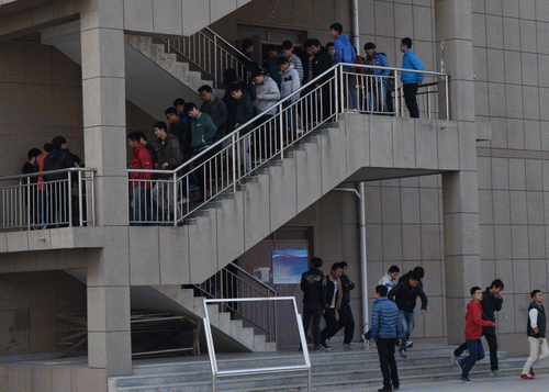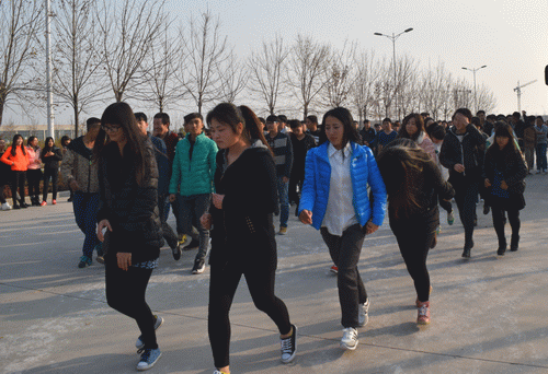 演练前,各系部负责人向学生们详细讲解地震发生时如何逃生、自救以及逃生中应注意的问题。随着校园内应急警报的响起,各系部学生在老师们指导下,沉着冷静、紧急避险。同学们按照老师的疏散指令,沿预定的逃生路线,双手抱头、弯腰,保持队形往楼下集合点有序疏散。不到3分钟,全校2000多名学生通过多个疏散通道顺利疏散至各集合点。