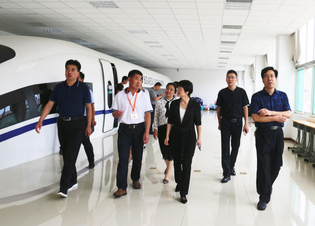 齐河县考察团一行在邵长山主任的陪同下,参观了学院航空高铁实训基地、金工工艺实训车间、京东校园实训中心等实训场所,听取了学院两个混合所有制二级学院办学运行情况的详细介绍。