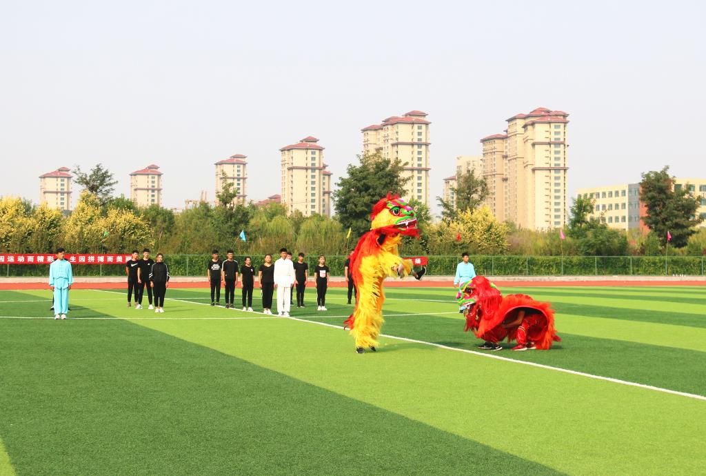 运动员、裁判员退场后,精彩的团体项目表演开始。由各院部推选的表演代表队,踏着青春的旋律、和着优美的音乐,展现了年轻人热情洋溢、激情似火的情怀,啦啦操、健美操、武术、舞狮等,丰富多彩而又充满激情和活力的表演展现了大学生的青春魅力,也展示了“山海院”学子新时代拼搏进取的昂扬精神风貌。