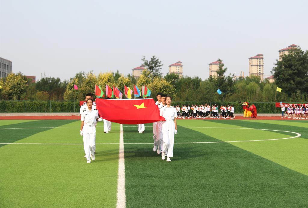 上午九时,激昂的进行乐曲响彻运动场,护旗队、彩旗队、花束队、裁判员队伍及各代表队依次入场。各代表队以整齐有力的步伐和昂扬的精神风貌通过主席台,部分代表队还进行了个性化形象展示,充分展现了“山海院”人的亮丽风采。在雄壮的国歌声中,举行了庄严的迎国旗仪式。