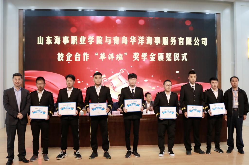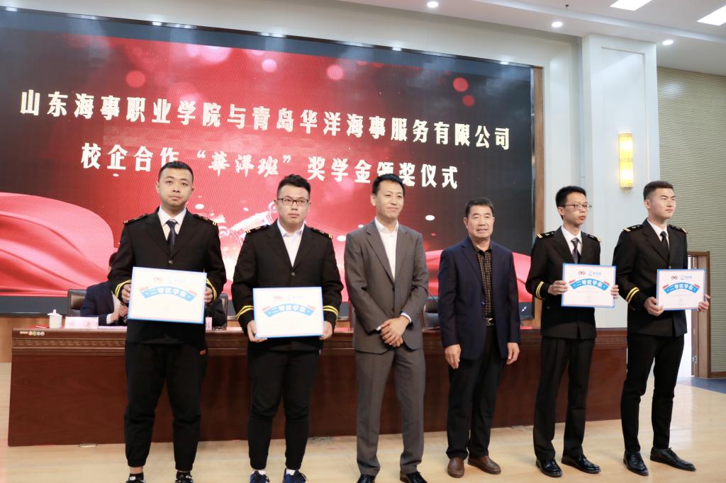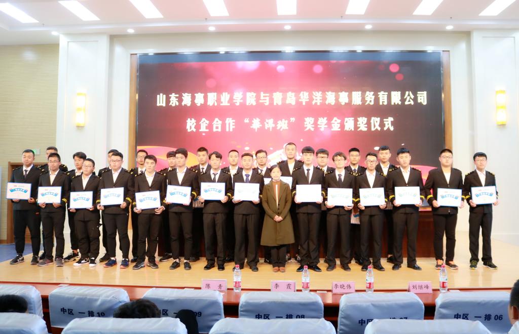 “华洋班”是学院与青岛华洋海事服务有限公司联合探索职业教育产教融合、校企合作育人新模式的产物。“华洋班”作为校企合作双主体育人模式下校企联合教学班级,于今年7月份成立,8月份首届“华洋班”37名同学赴青岛华洋海事服务有限公司进行企业培训并登船开始船上认知学习,效果显著,深受师生喜爱。根据双方校企合作育人协议相关内容,青岛华洋海事服务有限公司提供覆盖全体“华洋班”学员的奖学金和助学金,以帮助学员减轻一定负担顺利完成学业。此次颁奖仪式,同时也是对“华洋班”自成立以来,在班级学习和生活中表现优异学员的表彰及肯定,也为学院其他在校生树立了学习榜样,激励更多学生努力学习,积极奋进。
