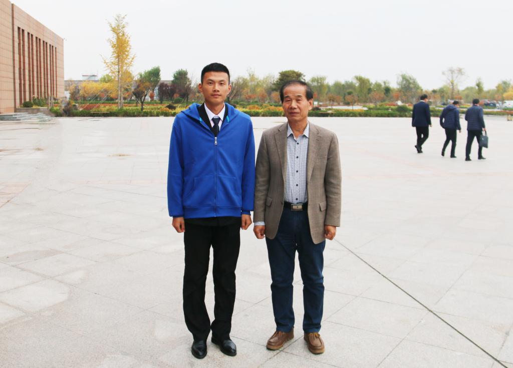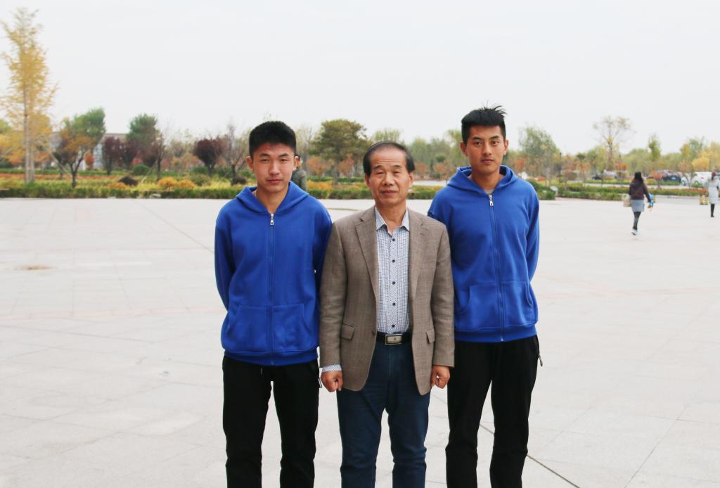 王院长与蒋文鑫(1500米亚军)和杨晓龙(十项全能季军)合影