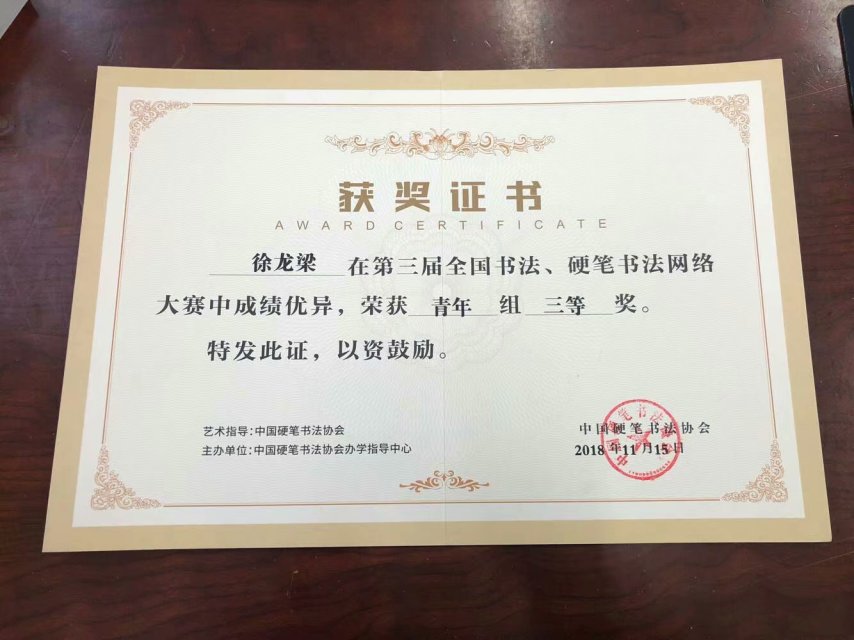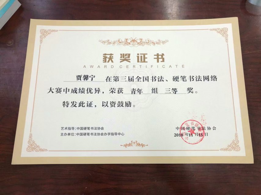 本次大赛是由中国硬笔书法协会办学指导中心主办的第三届书法、硬笔书法网络大赛,是面向全国号召与征集书法作品的全民参与性大赛。旨在弘扬中国传统文化,践行大书法,比赛紧紧围绕张华庆主席“服务、团结、普及、提高、发展、繁荣”的指导思想,全面展示当代书法、硬笔书法的艺术成就。自9月份学院参赛以来,学院海墨书法协会积极组织协会会员准备参赛作品,经反复酝酿、修改、打磨、,学院学子书法作品最终在决赛中脱颖而出,取得包括一二三等、优秀奖等所有奖项在内的骄人成绩。