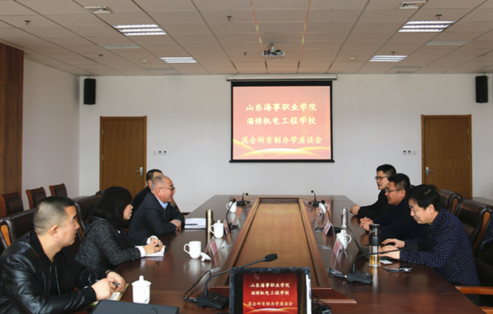 3月5日,淄博机电工程学校校长李滨,淄博市教育局职成教育课副科长李红霞,山东诚成教育集团董事长谢金言,淄博诚成教育咨询有限公司经理杜志刚来学院交流学习公办职业院校混合所有制办学。学院党委副书记徐立清,研究室主任郭素森,党政办公室副主任王德帅出席活动。