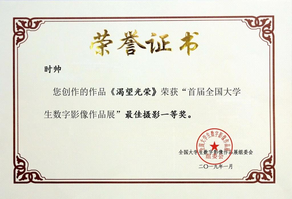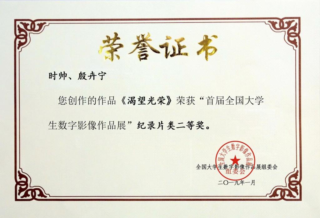 近日,首届全国大学生数字影像作品展奖项结果公布,经过初赛和复赛的严格选拔,学院2017级无人机2班时帅同学的校园纪录片《渴望光荣》,在李刚老师的指导和大学生新闻中心全体同学协作下,荣获此次“全国数学影像作品展”“纪录片类二等奖”和个人“最佳摄影一等奖”。