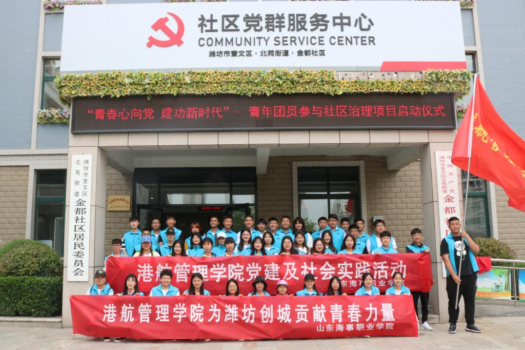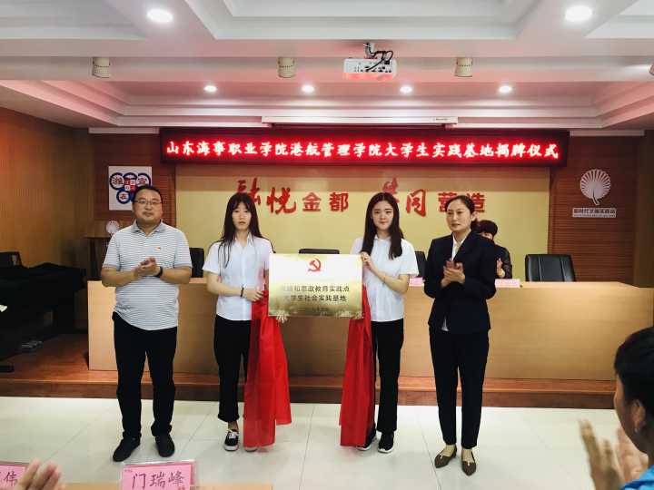 5月18日,港航管理学院党总支深入贯彻落实习总书记《在纪念五四运动100周年大会上的讲话》精神,在潍坊市奎文区北苑街道金都社区隆重举行“党建和思政教育实践点、大学生社会实践基地”的成立暨揭牌仪式。奎文区北苑街道党工委组织委员、总工会主席田林,北苑街道办事处副主任张鹏,北苑街道金都社区党委书记王致娟,港航管理学院党总支书记、院长陈铭志,院长助理门瑞峰出席活动,港航管理学院50余名入党积极分子及学生干部参加活动。