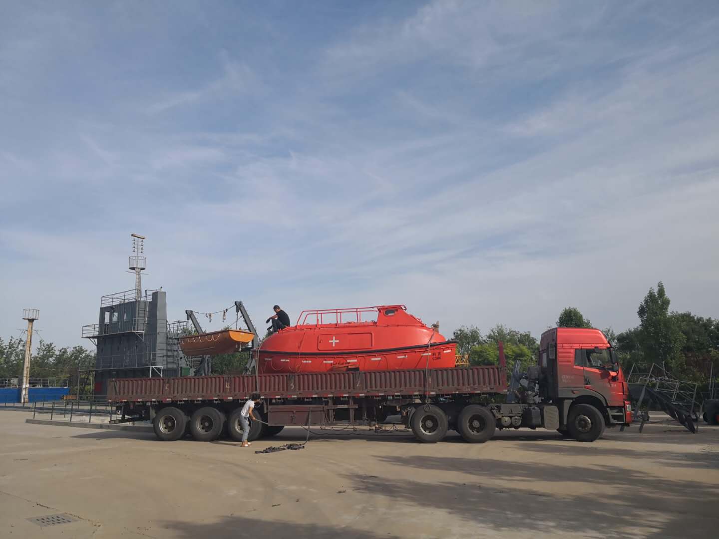 平台救生艇及艇架安装到位