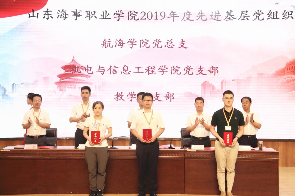 副院长仉继航同志宣读了《山东海事职业学院2019年度优秀共产党员、优秀党务工作者和先进基层党组织的表彰决定》即授予陈勇、耿学亮、王红梅、苑振冬、赵晓琨 、孙慧琳、牟佳佳、徐萌、蔡君、杨超、张政、刘雪梅、连佳蕙13名同志为山东海事职业学院2019年度优秀共产党员;授予臧琪琳、王冠伟、张娣、刘甜甜、张建军5名同志为 山东海事职业学院2019年度优秀党务工作者;授予航海学院党总支、机电与信息工程学院党支部、教学党支部为山东海事职业学院2019年度先进基层党组织。