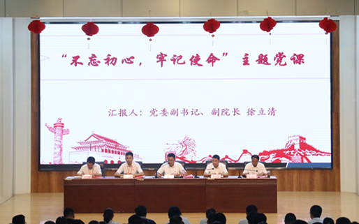 会上,党委副书记、副院长徐立清同志主讲了《不忘初心,牢记使命》主题党课。徐立清同志围绕共产党人的“初心”是什么,为什么要“不忘初心”和如何才能做到“不忘初心”三大方面深刻阐述了坚持中国共产党的领导是中华民族实现民族复兴的唯一正确道路。徐立清同志指出,中国共产党的“初心”,就是中国共产党人的“本”。不忘初心,就是不忘本。忘本意味着背叛,意味着变质。本固党兴,本固邦宁;不忘本,是中国共产党永葆活力的源泉,是中国现代化事业不断前进的起点。