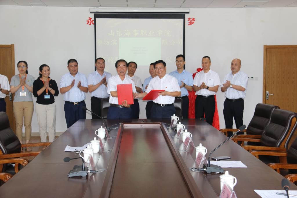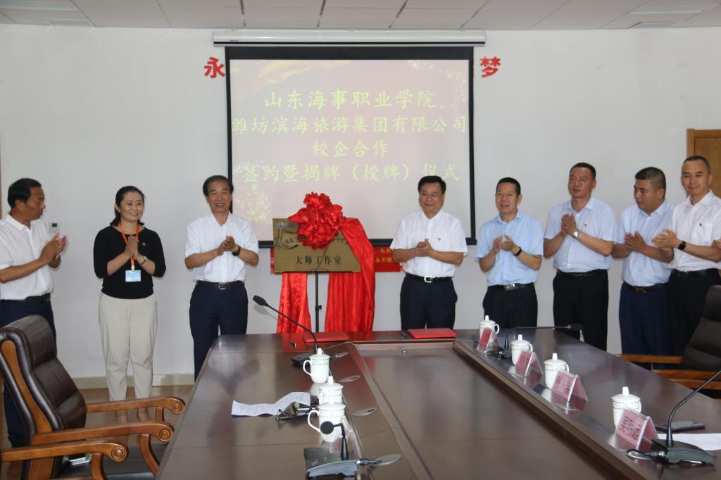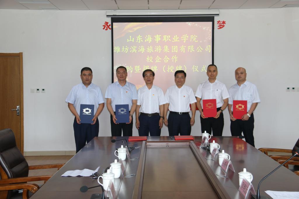 为提高人才培养质量,加强校企协同育人机制建设,实现“优势互补、资源共享、互惠双赢”。7月16日上午,山东海事职业学院与潍坊滨海旅游集团有限公司校企合作签约暨揭牌(授牌)仪式在山东海事职业学院图书馆举行。潍坊滨海旅游集团有限公司总经理吴明远等代表,山东海事职业学院党委书记、校长王敬良等代表出席此次仪式。