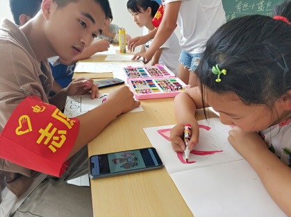 曙光服务队团队在村委二楼开设了一系列辅导教学活动,组织了主要科目教学指导及课外画画教学这两个项目,在文化课上,对于一些文化课基础不是很好的学生,志愿者采用一对一辅导的形式,帮助其巩固课堂知识。安家村较为偏僻,这里学生的学习水平较城市里的学生差别大,教学条件跟不上,尤其是学生的英语水平相比城市同年龄段学生存在较大差距。为了巩固学生的文化课修养,志愿者的队员每天都悉心地为这些学生讲解课本上的知识,解决他们课业上的难题,小朋友们纯真的笑脸是对志愿者辛苦付出的最大肯定。除了给小朋友们传授知识,更多的还是与小朋友的心灵沟通,村里很多孩子都是留守儿童,大都由爷爷奶奶带大。了解到这种情况后志愿者们更加努力教授小朋友知识的同时传递给小朋友更多的爱和温暖。“学为人师,行为世范" ,志愿者用行动践行了“师者”的责任。弘扬雷锋精神,发扬青年学生先进性,志愿者们还分出两部分分别对一楼二楼进行打扫,通过对社区卫生的打扫活动,包括玻璃桌子凳子,让志愿者和小朋友们更好地学习了雷锋精神,把雷锋精神更好地传承下去。