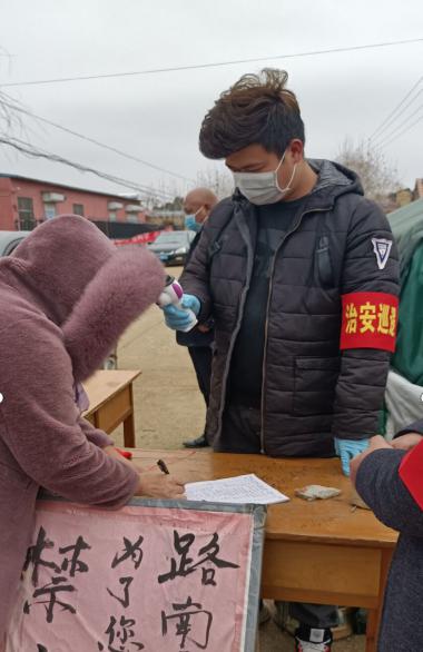 刘立志同学在坊子区华丽世家小区值班点为进出人员测量体温