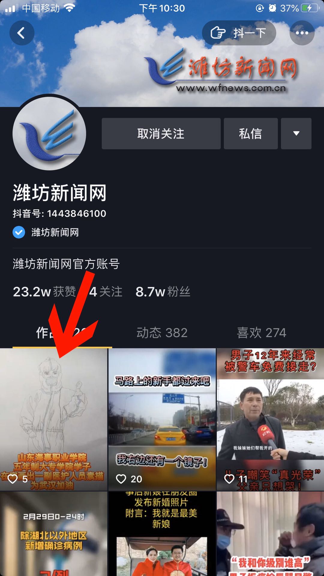 近日,五年制大专学院创作的优秀师生志愿者共抗疫情抖音视频《抗击疫情,我们在行动》,被发布在潍坊人民广播电台、潍坊新闻网等主流新闻媒体平台,师生勇于担当,心怀责任之风,以实际行动践行爱国主义精神,获得网友一致点赞好评。