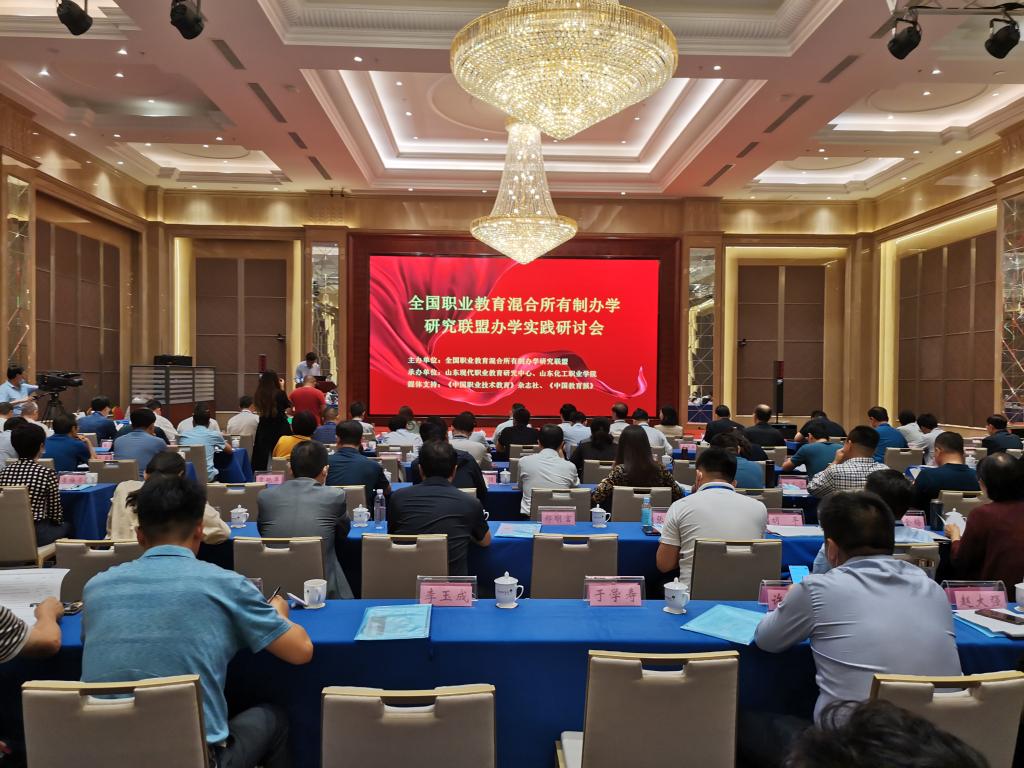 研讨会上,《中国职业技术教育》杂志执行主编刘红作大会致辞;联盟名誉理事长,山东海事职业学院院长、山东化工职业学院院长王敬良作《关于山东化工职业学院混合制改革的几个问题》报告;联盟专家、长沙航空职业技术学院教授雷世平作《回眸发展 直面问题 奋发有为————职业教育混合所有制办学体制改革的思考》学术报告;山东化工职业学院混改举办者之一、山东水利发展集团有限公司党委副书记、总经理李加坤作《深化职教混合制改革 培育企业发展新动能》报告;威海职业学院山东海大航海技术专修学院院长刘宝刚、山东畜牧兽医职业学院副院长王金诺作了典型发言;联盟秘书长、山东海事职业学院、山东化工职业学院研究室主任郭素森以教育部政策法规司委托课题为依托作《基于办学实践的职业院校混合所有制改革法律与政策分析》报告。