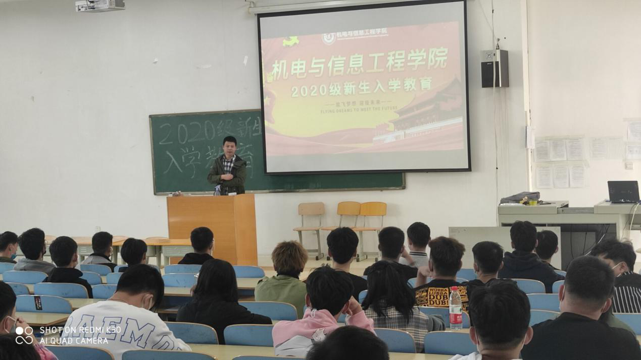 为教育引导2020级新生开好学、起稳步,尽快适应学校的学习生活,10月13日,机电与信息工程学院在第二信息化室、1518室、2518室三个大教室,同时开展了三场2020级新生入学教育。教育活动由机电与信息工程学院党总支臧书记、副院长潘春兰、院长助理郑晓龙主讲,2020级新生共计430人参加了本次教育活动。