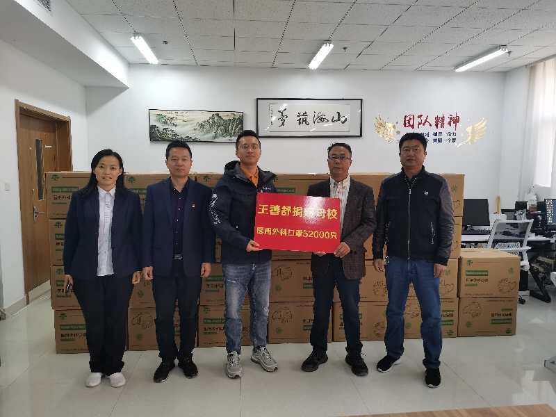 2020年10月21日,为感谢母校一直以来的鼓励与支持,山海筑梦大学生创业体验基地创始人、优秀校友王善舒,向学校捐赠五万只口罩。学校副校长宋志刚、吕明,马克思主义学院院长冯小红、后勤处处长吕建友出席了捐赠仪式,并对王善舒的慷慨捐赠表示感谢。王善舒表示将继续带领学弟学妹们牢记校训“积跬步、至千里”,努力发扬山海院不断拼搏的创新创业精神,打造自主品牌。