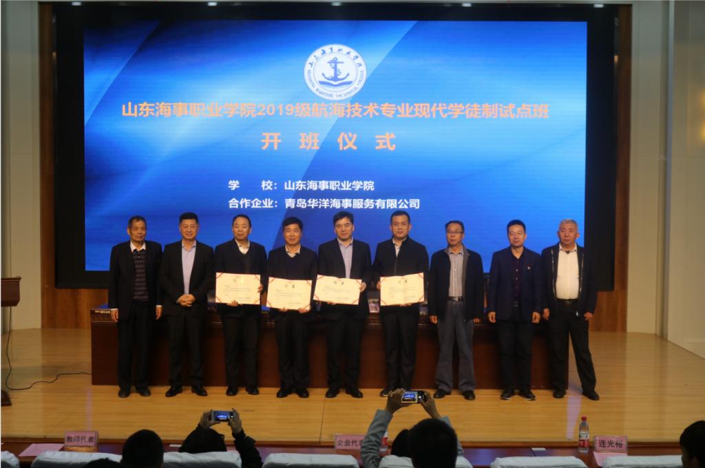 在与会成员的见证下山东海事职业学院2019级航海技术专业现代学徒制试点“华洋班”圆满开班。此次开班仪式给师生极大的信心和鼓舞,使师生对现代职业教育及自身发展前景充满了信心。相信在校企双方共同努力下,定能合力保障该项目的扎实推进,将我校现代学徒制试点办出质量,做出成效,努力将该项目打造成具有示范作用的山东品牌和现代学徒制实施的典范。