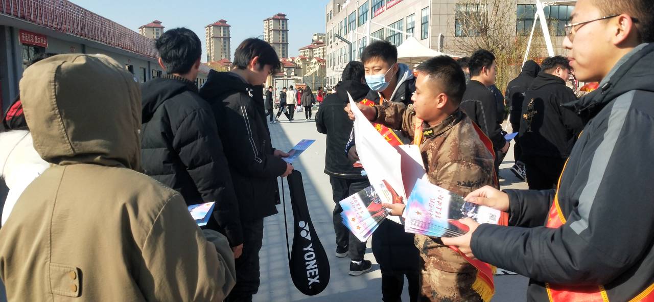 2021年春季征兵工作从12月10日起全面启动网上兵役登记、应征报名和政策咨询。为了不断提升新兵综合素质、巩固大学生为主体的兵源态势,寒亭区武装部、学校武装部联合开展专题宣讲。此次活动共吸引了全校各专业近300名学生到现场聆听,通过现场发放征兵宣传手册、播放征兵宣传片、专题讲解,使大学生们对参军报名条件、入伍优惠政策上有了详细的了解。在活动现场郜政委向广大有志青年发出召唤,鼓励他们“携笔从戎,逐梦军营”在思想上、身体上做好双重准备,到军营去经历最光荣、最精彩的人生。