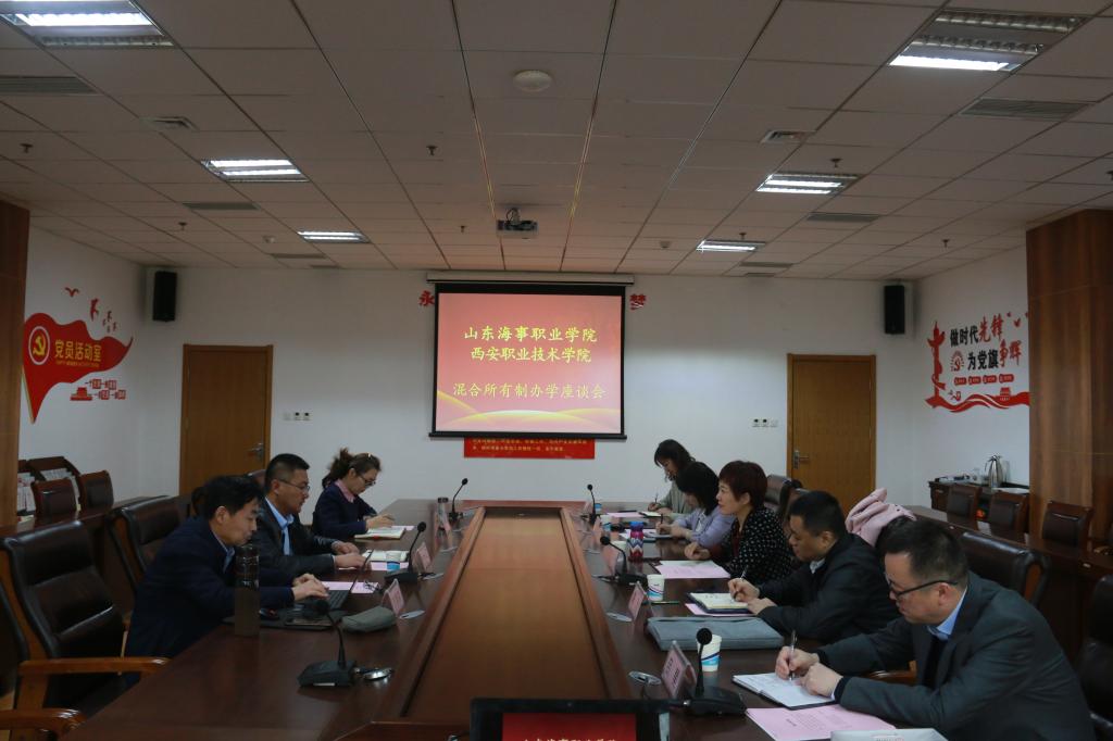 4月27日上午,西安职业技术学院党委副书记、纪委书记王莉等一行5人来学校研讨交流混合所有制办学改革,学校党委副书记、常务副校长徐立清以及教务处、研究室等部门负责人参加了座谈交流。