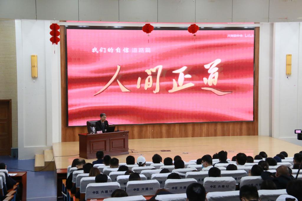 为庆祝中国共产党成立100周年,更好地学习宣传贯彻习近平新时代中国特色社会主义思想和党的十九大精神,激励和引领广大师生坚定不移听党话、跟党走。5月9日下午,学校团委邀请团中央青年讲师团讲师岳松在图书馆报告厅进行了《从百年辉煌历程 读懂中国共产党为什么能》的专题讲座。讲座由团委书记李雪主持,我校党员教师及学生骨干等人员参加。