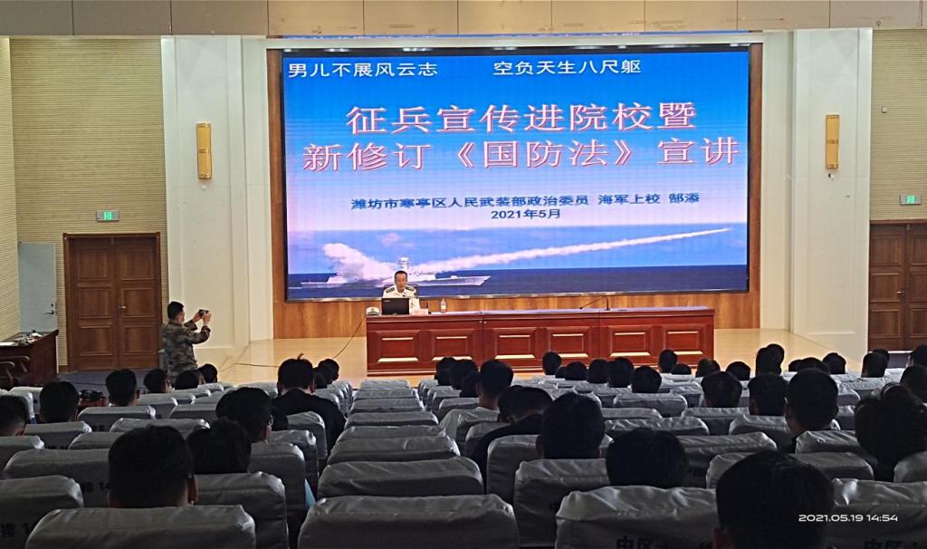 5月19日下午寒亭区人民武装部政委郜添同志及征兵工作站在山东海事职业学院举办国防宣传工作,我校仉继航副校长、武装部副部长孟凡明陪同。