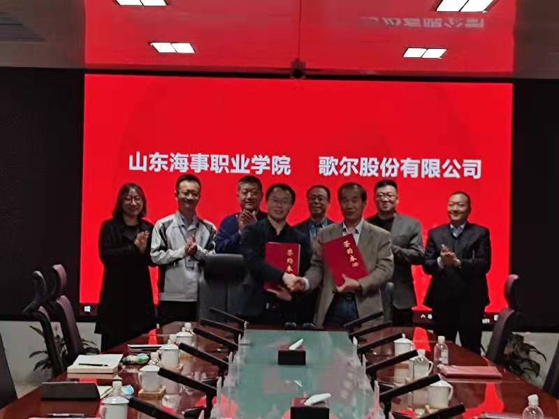 12月21日下午,学校与歌尔股份有限公司合作共建“山东海事职业学院—歌尔匠造产业学院”签约仪式在歌尔股份有限公司光电产业园举行。潍坊产教融合研究院院长田元训,歌尔股份有限公司员工管理部总经理魏文滨、总监李高峰、部长孙晓梅、经理王吉庆,山东海事职业学院校长王敬良、副校长宋志刚、对外合作交流处和校企合作处负责同志共同出席签约仪式。学校校长王敬良与歌尔股份有限公司员工管理部总经理魏文滨分别代表双方签署协议。