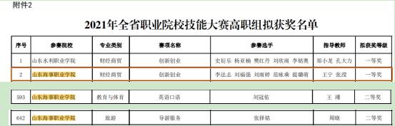 近日,山东省教育厅公布《2021年全省职业院校技能大赛高职组拟获奖名单》,学校在大赛中获一等奖1项、二等奖2项,取得历史性突破。