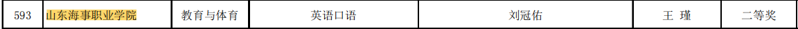 由李法志、刘福强、刘雨婷、范咏乘、提璐萌等五位同学组成的代表队在港航管理学院教师王宁、张滢的指导下,荣获创新创业项目一等奖;刘冠佑在基础部教师王瑾的指导下荣获英语口语项目二等奖;张择铭在邮轮游艇学院教师周晓的指导下荣获导游服务项目二等奖。