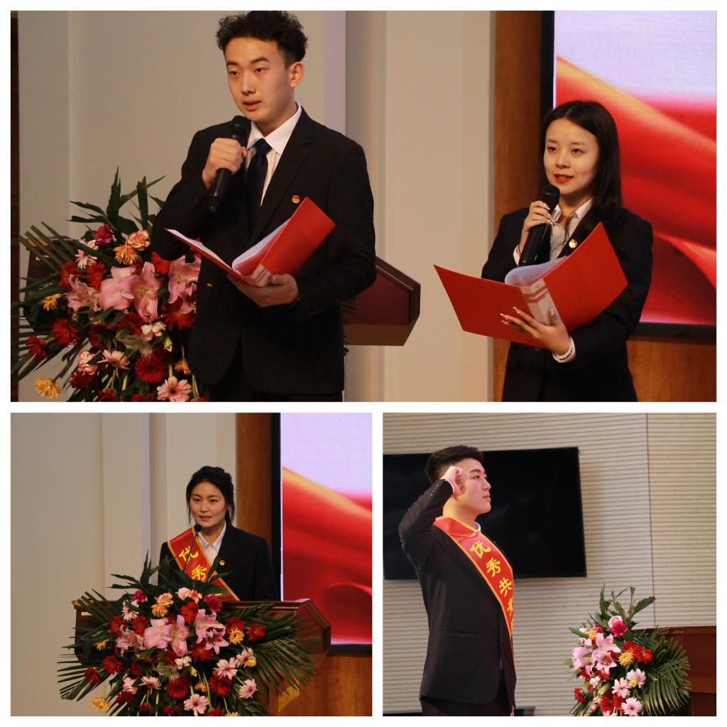 随后,港航管理学院学生代表李代弟上台演讲,分享了个人的经历和感受,用实际行动践行了“强国有我”的青春誓言。机电工程学院学生代表曹向阳带领同学们进行宣誓,重温入团誓词。