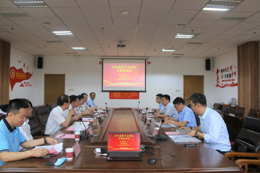 5月25日上午,“华洋海事产业学院”筹建专题座谈会在我校举行。潍坊海事局局长柳强,华洋海事中心有限公司副总经理杨善利、劳务事业部总经理助理申石磊,青岛华洋海事服务有限公司总经理邹波,山东世华航运服务有限公司总经理祁晓,校长王敬良、执行校长徐立清、副校长吕明等相关人员参加了会议。会议由潍坊海事局局长柳强主持。
