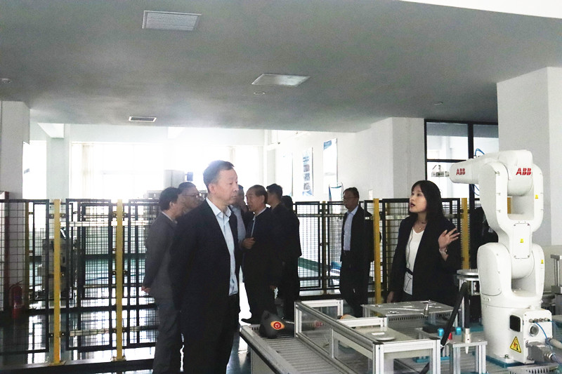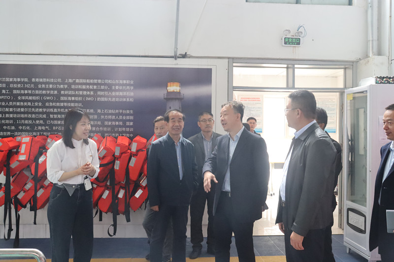 座谈前,在校长王敬良、执行校长徐立清,副校长宋志刚、吕明等人陪同下,中国海洋大学职业技术师范学院院长董士军、副院长刘杰等实地参观考察了学校航空实训基地、国际海洋工程实训中心、工业机器人实训基地、航海仿真实训基地。