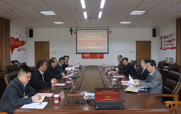 座谈会上,校长王敬良向来宾详细介绍了学校混合所有制办学模式和校企合作办学路径,双方就涉海类专业群建设及师资培训等事宜展开深入交流研讨。