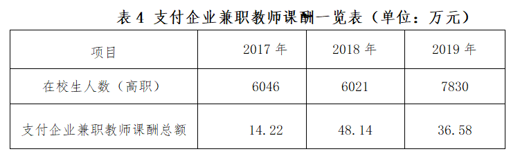 学院根据专业建设和发展的实际,聘请了行业企业的专业人才和能工巧匠充实兼职教师队伍,给专任教师带来生产一线的新工艺、新技术,弥补专任教师专业实践经验不足的软肋。三年来,学院支付企业兼职教师课酬总额98.94万元。其中,2017年学院支付企业兼职教师课酬总额14.22万元,2018年学院支付企业兼职教师课酬总额48.14万元,2019年学院支付企业兼职教师课酬总额36.58万元(见下表)。