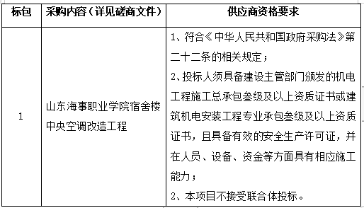 一、项目名称:山东海事职业学院宿舍楼中央空调改造工程项目