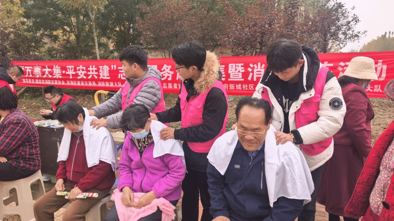 在便民服务区域,志愿者们耐心地为老人们测量血压、推拿按摩,细致询问他们的身体状态和用药情况,针对高血压、糖尿病等常见老年疾病,提供饮食调理、健康保健等专业建议。“志愿者们不仅给我们讲消防安全知识,还能免费量血压、剪头发,真是太贴心了!”现场的一位老人说。