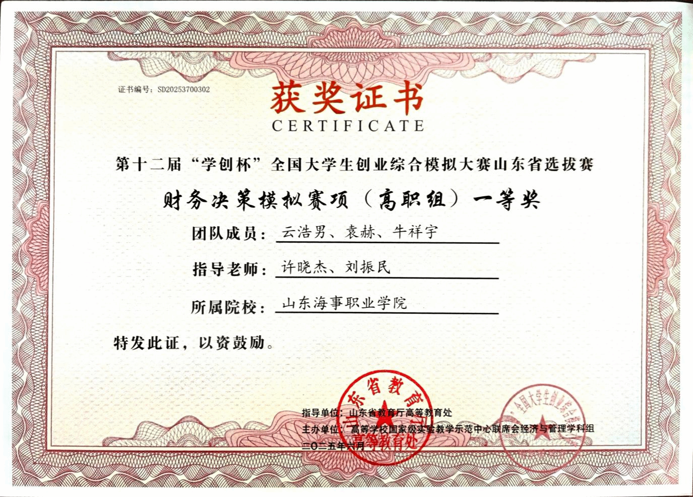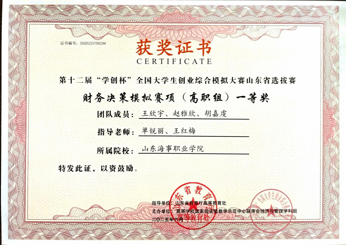 2025第十二届学创杯全国大学生创业大赛财务决策赛道省一等奖