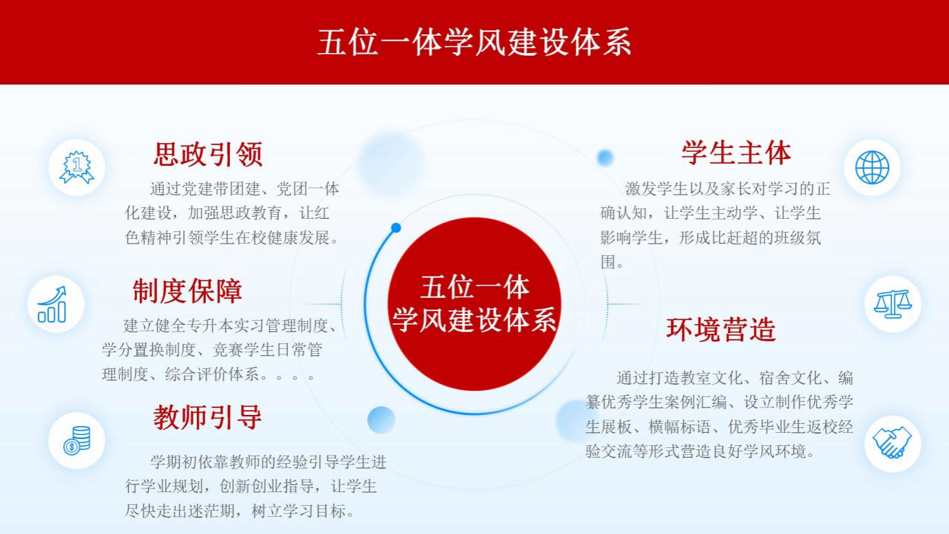 学院以思政建设为工作根本,本着“以学生为中心”的理念,坚持“知行合一 学以致用”的学风,以“爱学、乐学、善学、会学”为目标,加强学风建设,构建 “五位一体”(思政引领、制度保障、教师引导、学生主体、环境营造)学风建设体系,创新打造“校内书香竞优筑基、校外书屋暖乡拓维”的双向联动模式,推动学风建设从“单一培育”向“立体育人”升级,形成辨识度高、实效性强的学风品牌。