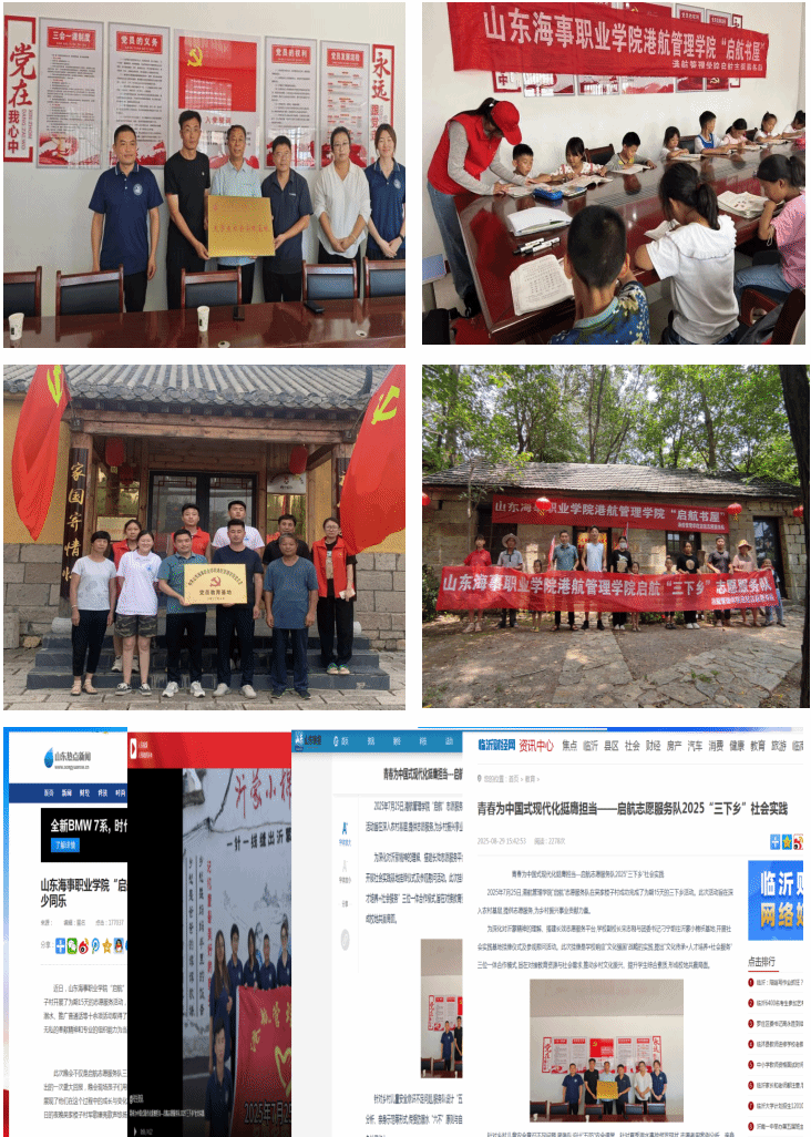四是志愿服务传真情。连续4年依托“三下乡”社会实践,在2县3镇5村建成12间“启航书屋”、共建3所社会实践基地。联合山东大学、临沂大学志愿服务队累计筹措图书2000余册,配套开展“绘本课堂”“学业辅导”,为乡村儿童筑牢“精神港湾”,累计服务当地群众1.8万人,乡村儿童占比75%,三下乡服务队被评为省级优秀服务队,带队老师刘伟被评为省级优秀指导老师。“启航书屋”项目获评山海院优秀实践项目,相关事迹被《人民网》、《山东晚报》等国家级、省级媒体报道10余次,形成良好社会口碑