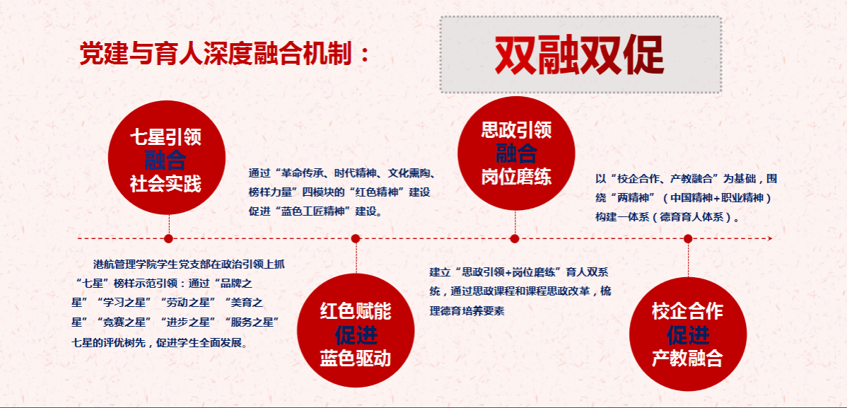 港航管理学院积极响应学校“一院一品”建设号召,全面贯彻党的教育方针,落实立德树人根本任务,以“立德”为根本、以“树人”为目标深入研究党建与育人深度融合机制,探索出一条独具特色的学生工作品牌建设之路-----党建与育人的双融双促。