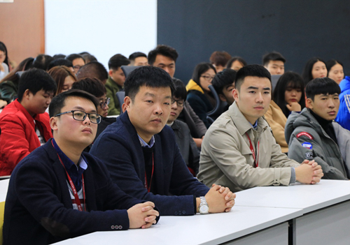 学院副院长李振鹏代表学院致辞,他对于学院师生在京东取得的优异成绩,表示衷心的祝贺!同时感谢京东集团对于学院学生在职场化教学与体验期间给予的精心培养和周到服务。李院长与大家一同回顾了学院学子在京东总部职场化教学与体验所取得的优异成绩。他指出成绩的背后意味着同学们辛苦的付出,同学们克服了很多困难和障碍,心理和工作学习经受了巨大的考验,部分同学抗压能力还比较弱,在京东职场教学和体验,无论是专业知识,岗位能力还是心理素质都使他们得到了大幅度的提高,甚至有的同学在业务方面赶上并超过京东正式员工的水平,京东的企业文化熏陶对学生的职业发展也将产生深远影响。
